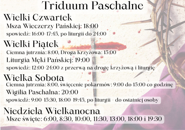 - Zapraszamy na codzienną adorację Najświętszego Sakramentu w kaplicy, a także na: poniedziałkową modlitwę za chorych o godz. 1700, adorację ze wspólnotą Gloria Crucis w czwartek po wieczornej Mszy Świętej oraz na Koronkę do Bożego Miłosierdzia w piątek o godz. 1500.